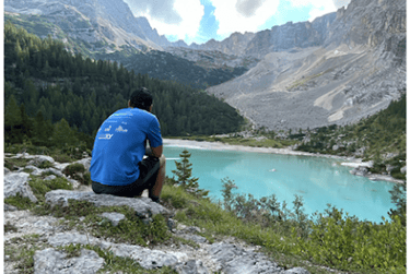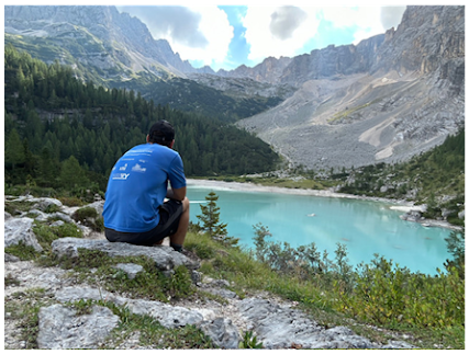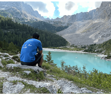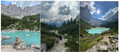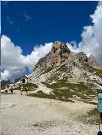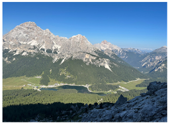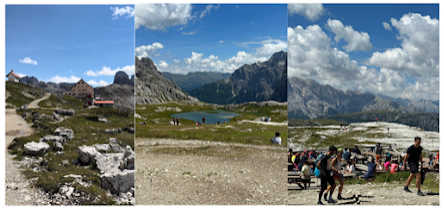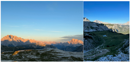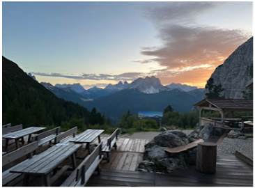 I was at Lake Sorapiss. I walked down to the lake to see what the hoopla was about. It didn’t disappoint. The lake was an icy blue color that didn’t seem to be of this world. People were everywhere. This was a special place. I decided to leave the lake and head up to the hut, Rifugio Vandelli. It was a 5-minute walk. There was a nice outdoor area with a beautiful overlook. I sat down at a table and took it all in. I made it to the hut. It was a tough day, but I made it.