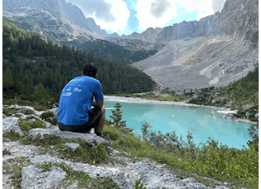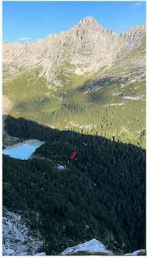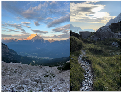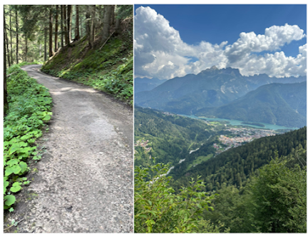 After a few hours we were greeted with a view of our destination; Pieve di Cadore (Above right photo). It seemed to be a quaint mountain village backdropped by a beautiful lake. Those were more frequent than you would think in Northern Italy, but it didn’t change the fact that this seemed to be a beautiful place to end the AV4. At this point Gareth started to limp. I felt bad for him, but I couldn’t help but smile on the inside. This was a person that had a very high opinion of himself. He was never tired. All the days were “easy” for him. It was nice to see him succumb to the wear and tear that a multi-day hike in the Dolomites did to a lot of people. It has happened to me in the past. I definitely limped to the finish line when I speed hiked the AV1. Today, I was still whole. No injuries to speak of. I took some solace in that. I was proud of myself and my body for holding up. Gareth was a good 12 years younger than me.