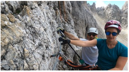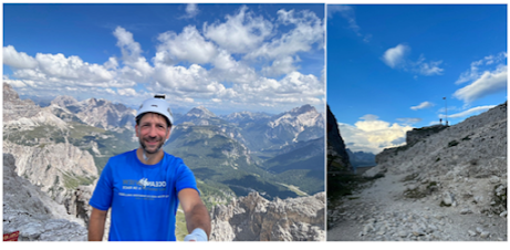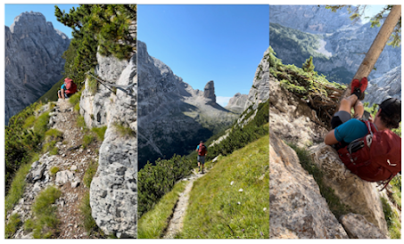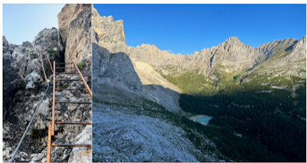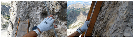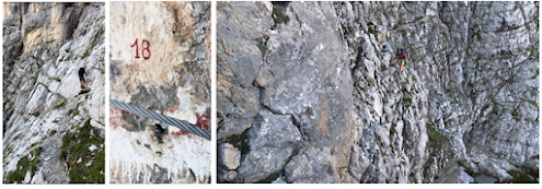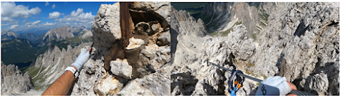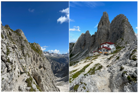 I still had adrenaline from finding my phone coursing through my veins. That seemed to carry me through most of the day. I wasn’t even phased when the route started its final long ascent up to my destination hut, Rifugio Fonda Savio (Above right photo). Like day 1, my adventure was just beginning. A 30-minute hike from the hut was Via Ferrata Merlone, which was a 3-hour Via Ferrata route.